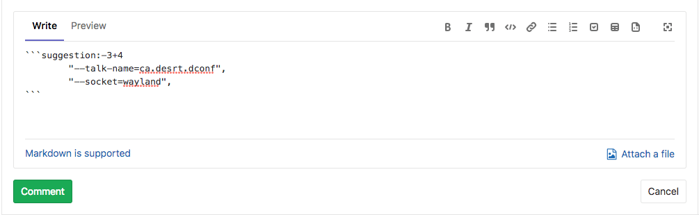 In the comment, add your suggestion to the pre-populated code block:
